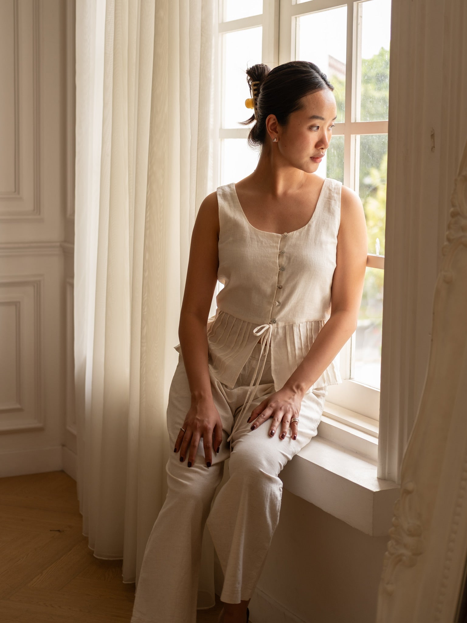 Megan is 170cm/5'5" tall | Waist 68cm/27" | Bust 84cm/33", wears Melrose Vest in size S.